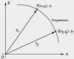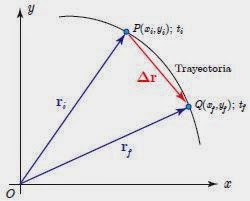 La partícula al barrer una trayectoria tiene una posición inicial y final, el cambio de posición en un intervalo de tiempo, esto se denomina ∆r, se define como: